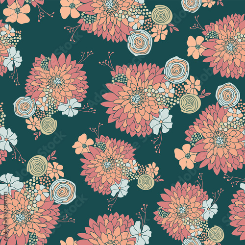 Floral pattern pink teal vectors (208).