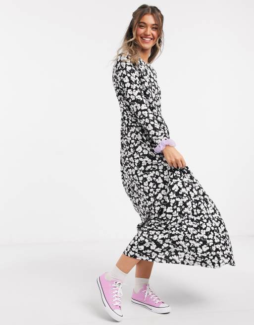 Black And White Floral Pattern Dress / Ditsy Floral Print Dress Tie Strap Dress Ruffled Dress Lulus : Homeyee women's 1950s vintage elegant cap sleeve swing party dress a009.
