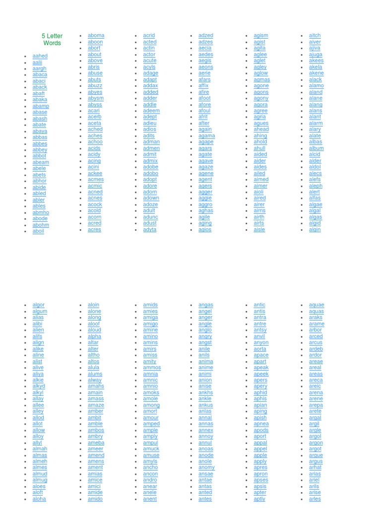 5 letter words that start with a · aahed · aalii · aargh · abaca · abaci · aback · abaft · abamp .